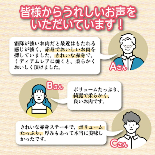 そんな宮崎牛の赤身ステーキはご家庭用にも、大切な方への贈り物にもおすすめです。