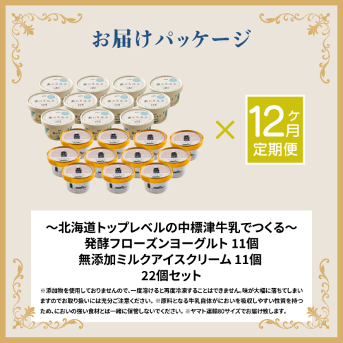 北海道 プレミアムミルクアイスクリーム×11個とフローズンヨーグルト×11個セット計22個 12カ月定期便【11158】