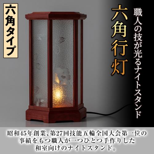 【2801404a】職人の技が光る六角行灯(マホガニー色) 雑貨 工芸品 ライト 灯 LED コンセント【林田木工】 1375790 - 鹿児島県東串良町