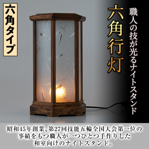 【2801405a】職人の技が光る六角行灯(ウォルナット色) 雑貨 工芸品 ライト 灯 LED コンセント【林田木工】 1375794 - 鹿児島県東串良町