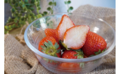 濃い赤色でツヤの良い、丸みを帯びた形状が特徴のイチゴです。甘味と酸味のバランスが良く、果肉がしっかりしているため日持ちしやすいです。