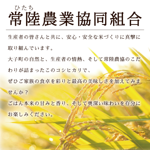 常陸農協は、生産者の皆さんと共に、安心・安全な米づくりに真撃に取り組んでいます。大子町の自然と、生産者の情熱、そして常陸農協のこだわりが詰まったこのコシヒカリで、ぜひご家族の食卓を彩りと最高の美味しさを加えてみませんか?