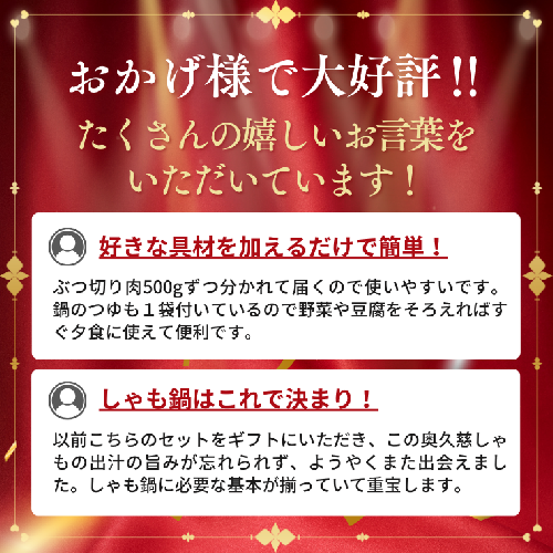 奥久慈しゃも鍋セットは、鍋用の骨付きブツ切とつゆがセットになっており野菜を加えれば、ご家庭で簡単に奥久慈しゃも鍋が召し上がれます。