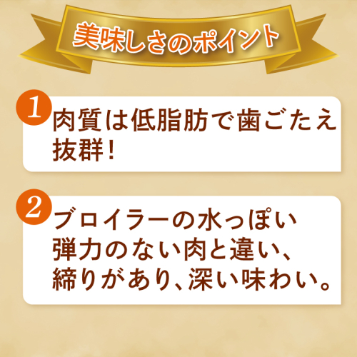 ・ブロイラーの水っぽい弾力のない肉と違い、締りがあり、深い味わいが特徴です。