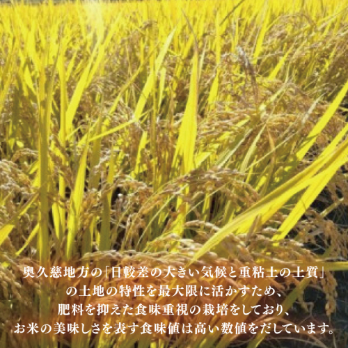 このような土地の特性を最大限に活かすため、肥料を抑えた食味重視の栽培をしており、お米の美味しさを表す食味値は高い数値を出しています。