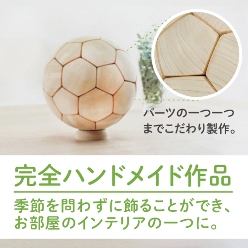 - 木製サッカーボール【大】(直径約22cm) ヒノキ台座付き インテリア 飾り ひのき(BH005)