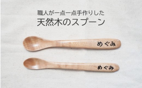 ≪数量/クレカ限定≫ 離乳食を始めるお子様に、自分だけのスプーンはいかがですか? サイズは2種類、成長に合わせご利用いただけます。 表にお名前・裏にはお誕生日を掘り込み色の木材で埋めました。 材質はカエデ白地の木肌が清潔感を出している品です。 ※返礼品ご選択後のお名前の加工となります。 ※めぐみ工房よりご連絡いたしますが、お急ぎの方は直接ご連絡をいただければ幸いです。 ■事業者情報 事業者名:めぐみ工房 連絡先:080-1252-2559 営業時間:インターネット営業      来店される際はご連絡お願いします