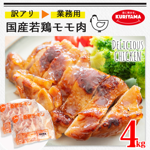 訳アリ!【業務用】国産若鶏モモ肉4kg_16-1402