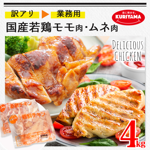 • 訳アリ!【業務用】国産若鶏モモ・ムネ計4kg_14-1404