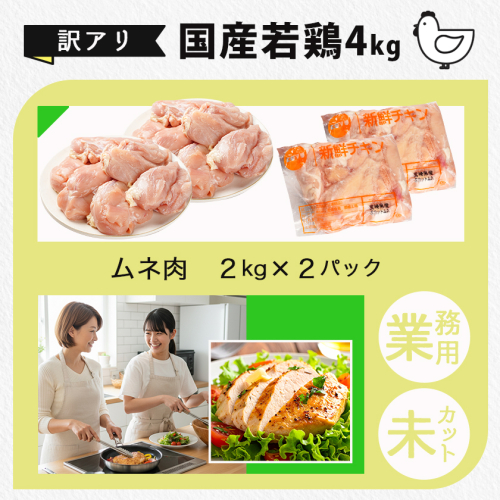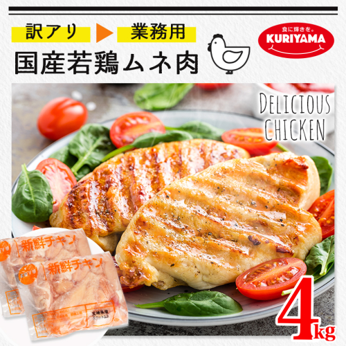 訳アリ!【業務用】国産若鶏ムネ肉4kg_12-1407