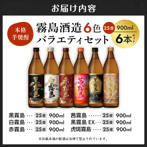 霧島酒造(25度)900ml×6色バラエティセット_AC-3803 1380176 - 宮崎県都城市