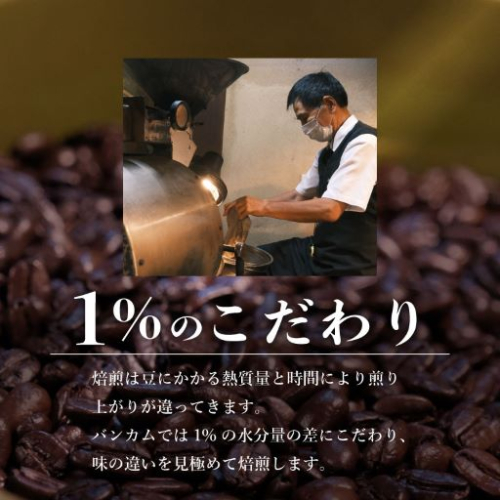 世界の珈琲農園を渡り歩き厳選した豆を、先人から学び40年以上かけ確立した「水蒸気焙煎」でバンカム独自のテイストに仕上げております。
