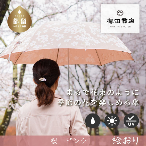 【槙田商店】晴雨兼用長傘 絵おり 桜 ベージュ