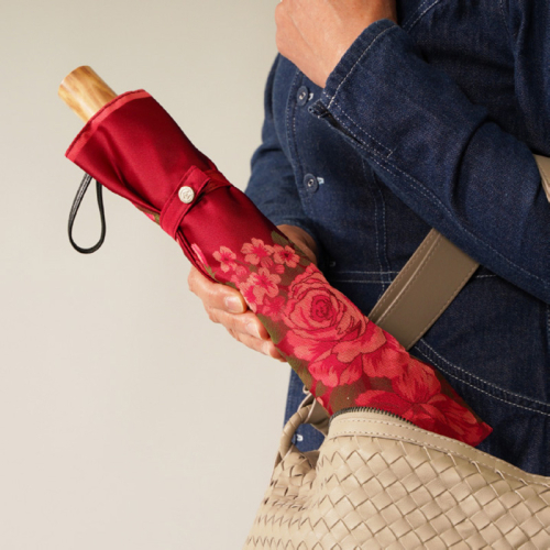 - 【槙田商店】晴雨兼用折りたたみ傘 絵おり 大ばら エンジ