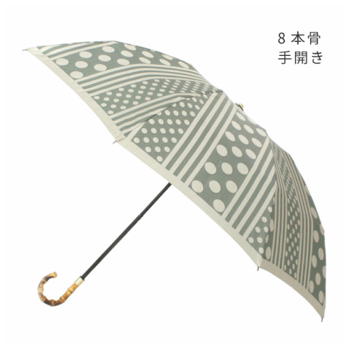 - 【槙田商店】晴雨兼用折りたたみ傘 kirie ドットとストライプ フォレストグリーン