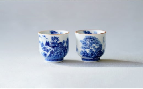 有田焼 手描き 山水絵 ぐい呑み 絵変り 2個セット【起山窯】食器 器 うつわ 酒器 ぐい呑み おちょこ セット ペア 電子レンジ対応 A30-644 1381890 - 佐賀県有田町
