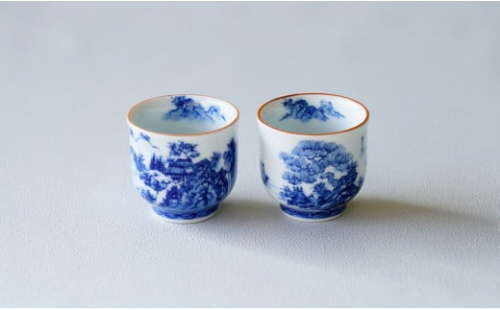 有田焼 手描き 山水絵 ぐい呑み 絵変り 2個セット【起山窯】食器 器 うつわ 酒器 ぐい呑み おちょこ セット ペア 電子レンジ対応 A30-644