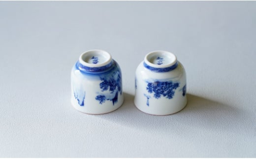 • 有田焼 手描き 山水絵 ぐい呑み 絵変り 2個セット【起山窯】食器 器 うつわ 酒器 ぐい呑み おちょこ セット ペア 電子レンジ対応 A30-644