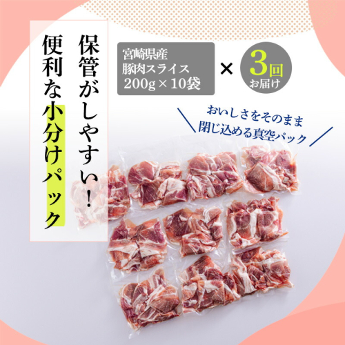 【定期便3ヶ月】宮崎県産豚肉切り落とし合計6kg(6000g) ひと月に200gの小分けパック10袋お届け! [国産 日本産 お肉 ワンストップオンライン] TF0686-P00020