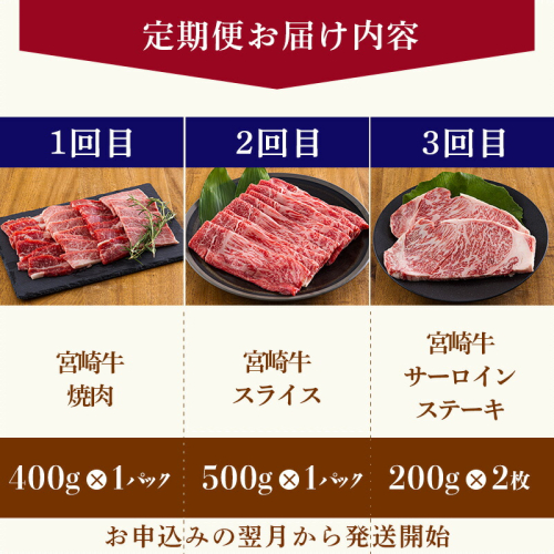 《定期便3ヶ月》宮崎牛月替わり堪能セットA 合計1300g [国産 黒毛和牛 ブランド牛 国産牛 お肉 ステーキ 焼肉 しゃぶしゃぶ 50000円 5万円 ワンストップオンライン] TF0689-P00020