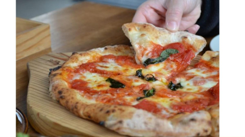 北海道産の良質な小麦を独自にブレンドした生地を、天然酵母を使用してゆっくりと発酵し、香りと風味の深いピッツァに仕上がっています。