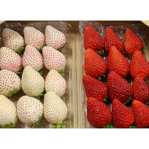 当園で、朝収穫した大粒のいちご【白いちご】【いばらキッス】【ひたち姫】【やよいひめ】の中から厳選して2パック、1箱として発送致します。
