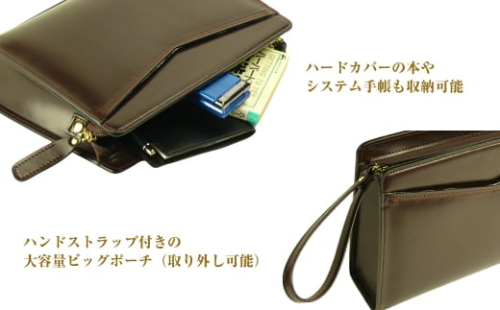 大きなサイズが便利な・本革メンズポーチ【ビッグポーチ】(チョコ)