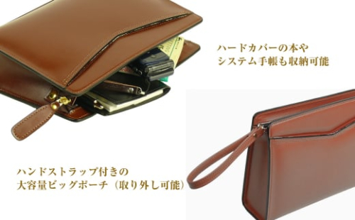 【毎日の持ち歩きに便利な本革ビッグポーチ】