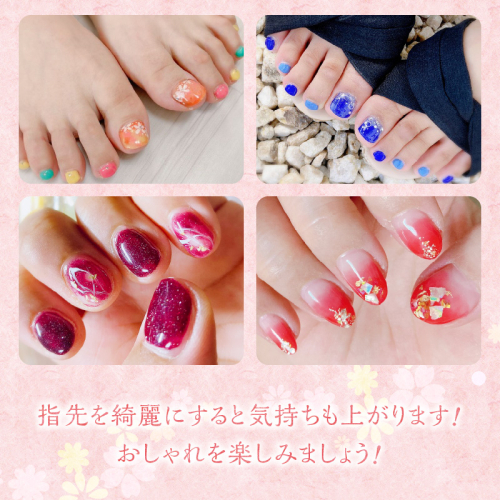 指先は自身も見えるから気持ちも上がりますよ!おしゃれを楽しみましょう!
