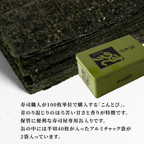 ミシュラン星付きのプロが愛用する 丸山海苔店 【こんとび(半切80枚 寿司屋専用缶入)】 のり 寿司 海苔 寿司職人 こんとび 手巻すし 家庭用 高級 プレミアム ミシュラン 三ツ星 プロ 丸山海苔 美味しい おいしい おにぎり ごはん [AV07-NT]