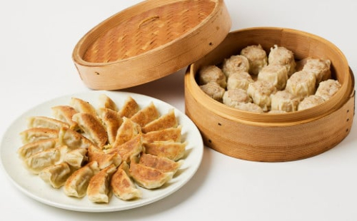 たかなべギョーザオリジナルの豚と野菜のギョーザに肉の旨味が口の中に広がり、それでいて何個でも食べられちゃうがっつり系の焼売をセットにしました。