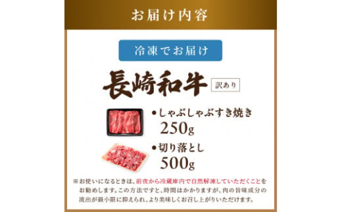 - 訳あり!【A4~A5】長崎和牛しゃぶしゃぶすき焼き250gと切り落とし500gセット( 牛肉 和牛 おすすめ しゃぶしゃぶ すき焼き 牛肉 冷凍 国産 送料無料 肉 プレゼント お取り寄せ 美味しい )【B2-183】