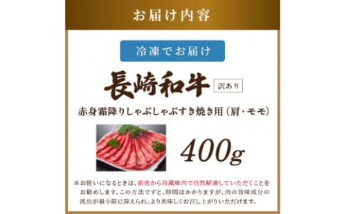 - 訳あり!【A4~A5】長崎和牛赤身霜降りしゃぶしゃぶすき焼き用(肩・モモ)400g( 肉 牛肉 牛 長崎和牛 国産牛 しゃぶしゃぶ すき焼き 霜降り 赤身 )【A9-060】