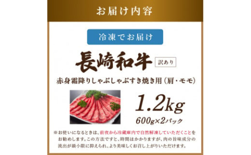 - 訳あり!【A4~A5】長崎和牛赤身霜降りしゃぶしゃぶすき焼き用(肩・モモ)1.2kg(600g×2p)( 肉 牛肉 牛 長崎和牛 国産牛 しゃぶしゃぶ すき焼き 霜降り 赤身 )【C0-082】