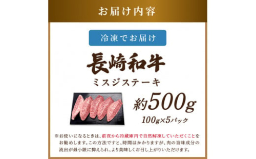 - 【厳選希少部位】【A4~A5】長崎和牛ミスジステーキ 約500g(100g×5p)( 牛肉 和牛 おすすめ ミスジ ステーキ 冷凍 国産 送料無料 肉 プレゼント お取り寄せ 美味しい )【B5-114】