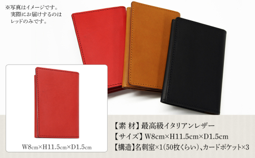 イントロ/名刺入れ(イタリアンレザー・レッド) カードケース レディース メンズ 二つ折り カード入れ 名刺ケース カード収納 プレゼント おすすめ 福岡県 大木町 ナデルファーデン BK135