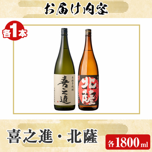 「喜之進」と「北薩」セット(合計2本・各1800ml) 本格芋焼酎 いも焼酎 お酒 限定焼酎 貯蔵酒 アルコール 一升瓶【齊藤商店】akn020-08 1390866 - 鹿児島県阿久根市