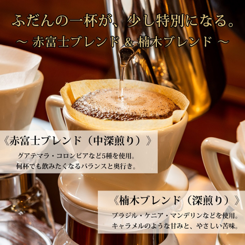 0012-59-01 【利き珈琲チャンピオン厳選】豆・赤富士ブレンド&楠木ブレンド|中深煎り・深煎り|赤富士珈琲