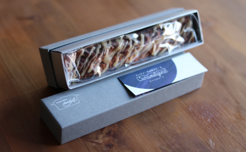 そのまま食べても美味しい泉州の水茄子を贅沢にもたくさん生地に練り込み、焼き上げたキャラメル風味の焼き菓子です。
