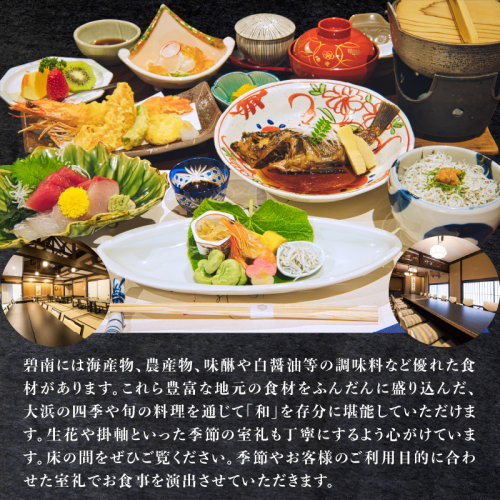 大正三年創業 大濱旬彩大正館 旬彩会席食事券(3名様用)贈り物 ギフト お祝い 利用券 チケット H192-002