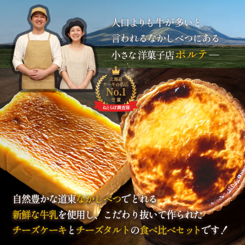 【Google口コミ星4.9の洋菓子店】【食べくらべセット】なかしべつ 至福の極濃チーズケーキ 1個 コクのあるチーズタルト 1台 セット 計485g【52004】
