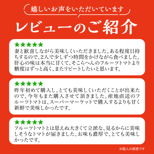 味が濃くてあま~いトマトで、多くのリピーターの方にご支持いただいております。