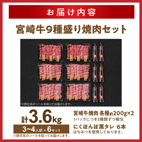 【数量限定】宮崎牛9種盛り焼肉セット(各600g×6P)≪みやこんじょ特急便≫_MC-3101-Q