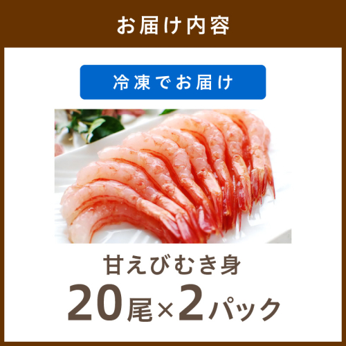 甘ーい!お手軽!日本海産 甘えび むき身 20尾×2パック 刺身用 魚介類 甲殻類 海の幸 刺身 冷凍 甘えび ふるさと納税 えび 甘エビ 海老 えび エビ アマエビ あまえび 甘海老 生食 刺身 冷凍 国産