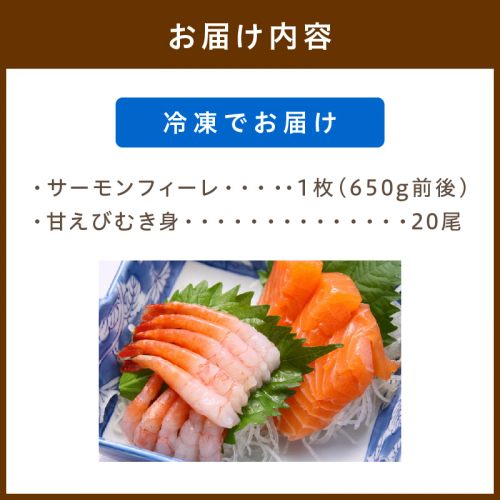 絶品!女性に大人気!お刺身食べ比べ!日本海産 サーモンフィーレ 約650g + 甘えび むき身 20尾×1パック 刺身用