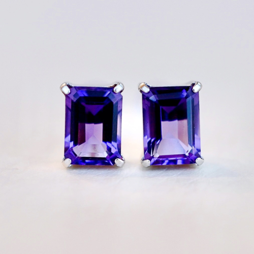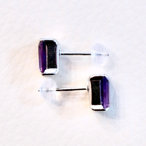 K14ホワイトゴールドのスタッドピアスです。 傷の目立ちやすいステップカットですので、石は上質なものを厳選して使用しております。 アメシストの深い紫とオクタゴンのシャープな形がスタイリッシュです。 アメシストは2月の誕生石です。 ケースに入れ、リボンをかけてお届けいたします。