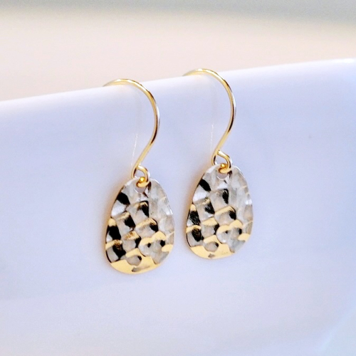 K18イエローゴールドの揺れるピアスです。 ハンマーテクスチャーを加えたパーツがキラキラと煌めきながら揺れます。 軽やかな着け心地とフックタイプなので着けやすく、デイリーに活躍してくれると思います。 ケースに入れ、リボンをかけてお届けいたします。