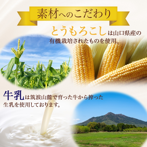 とうもろこしペースト(とうもろこし(国産))、牛乳、クリーム、砂糖、粉あめ、寒天、塩、バニラーペースト/トレハロース、(一部に乳成分を含む)