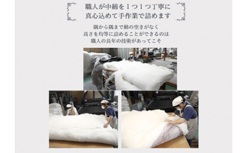 従来のポリエステル綿入りの薄いパットと違って、コットン100%の極上純綿がたっぷりと入っていますから、寝心地抜群です。