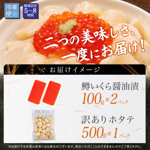 3606. 訳あり ホタテ フレーク 500g 鱒いくら醤油漬け 200g ほたて 帆立 玉冷 貝柱 鱒いくら いくら イクラ 魚卵 魚介 魚貝類 海鮮 送料無料 北海道 弟子屈町